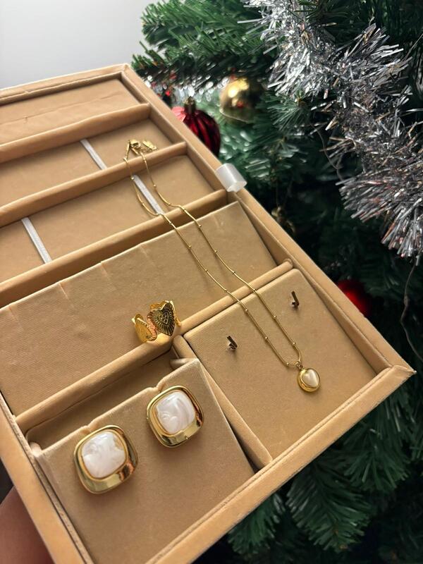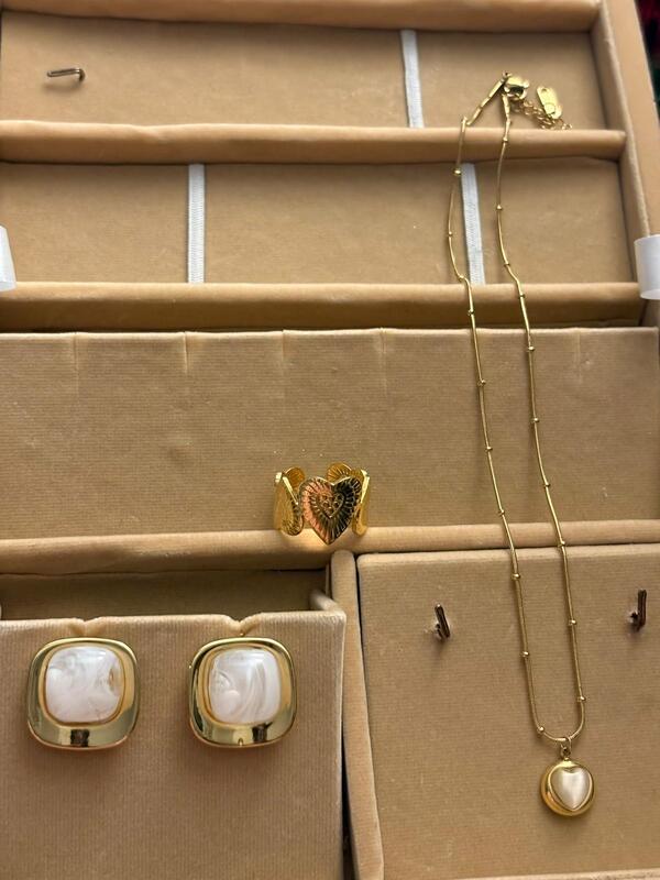 Featuring a beautiful faux pearl necklace that adds timeless elegance to any look, this piece glimmers with subtle sophistication, perfect for work, dates, or casual outings. Complete your ensemble with a Statement faux pearl Stud Earring, bold yet refined, that catches the light and draws attention to your features. For a touch of romantic flair, the Statement heart ring brings a powerful symbol of love and confidence to your finger. Whether you're dressing up or keeping it casual, this set blends glamour, versatility, and affordability into one unforgettable package. ✨